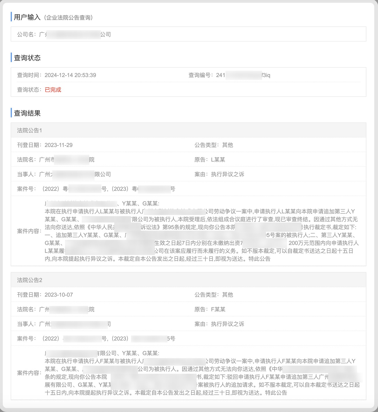图 3-2 (企业法院公告结果示例)